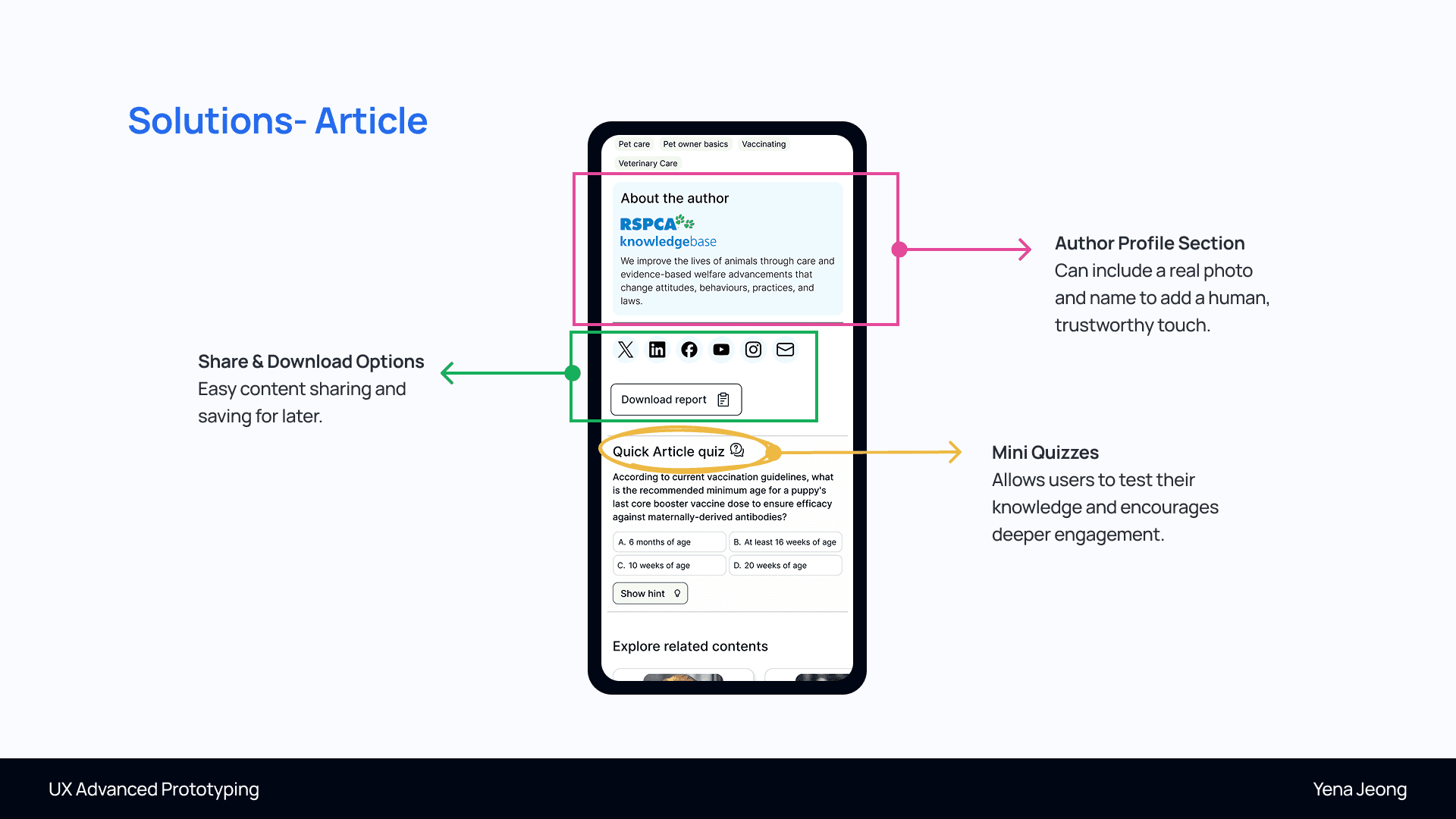You can check my prototype here https://www.figma.com/design/XStcTltPRs65rksBFU14px/RSCPA?node-id=772-7221&t=JzpdlEHsaM1xX8mm-1 Please also check my presentation here https://www.figma.com/slides/cx4Zxag9iSgP0dI6RWeIXV/RSPCA-Presentation?node-id=1-660&t=Z0FgJSWyS0EH1UlS-1