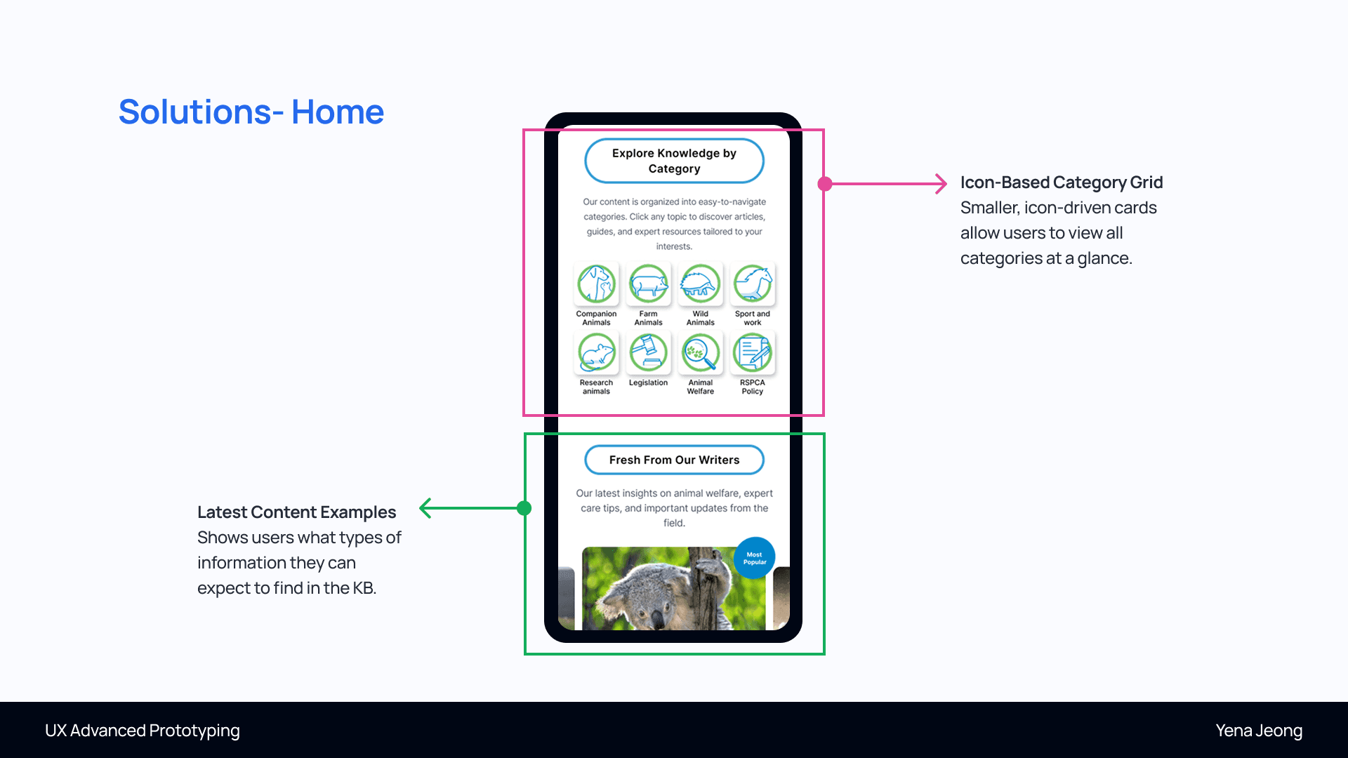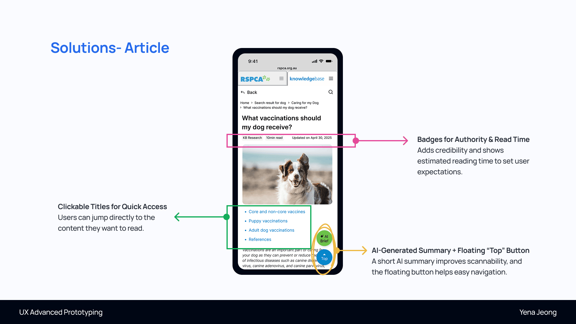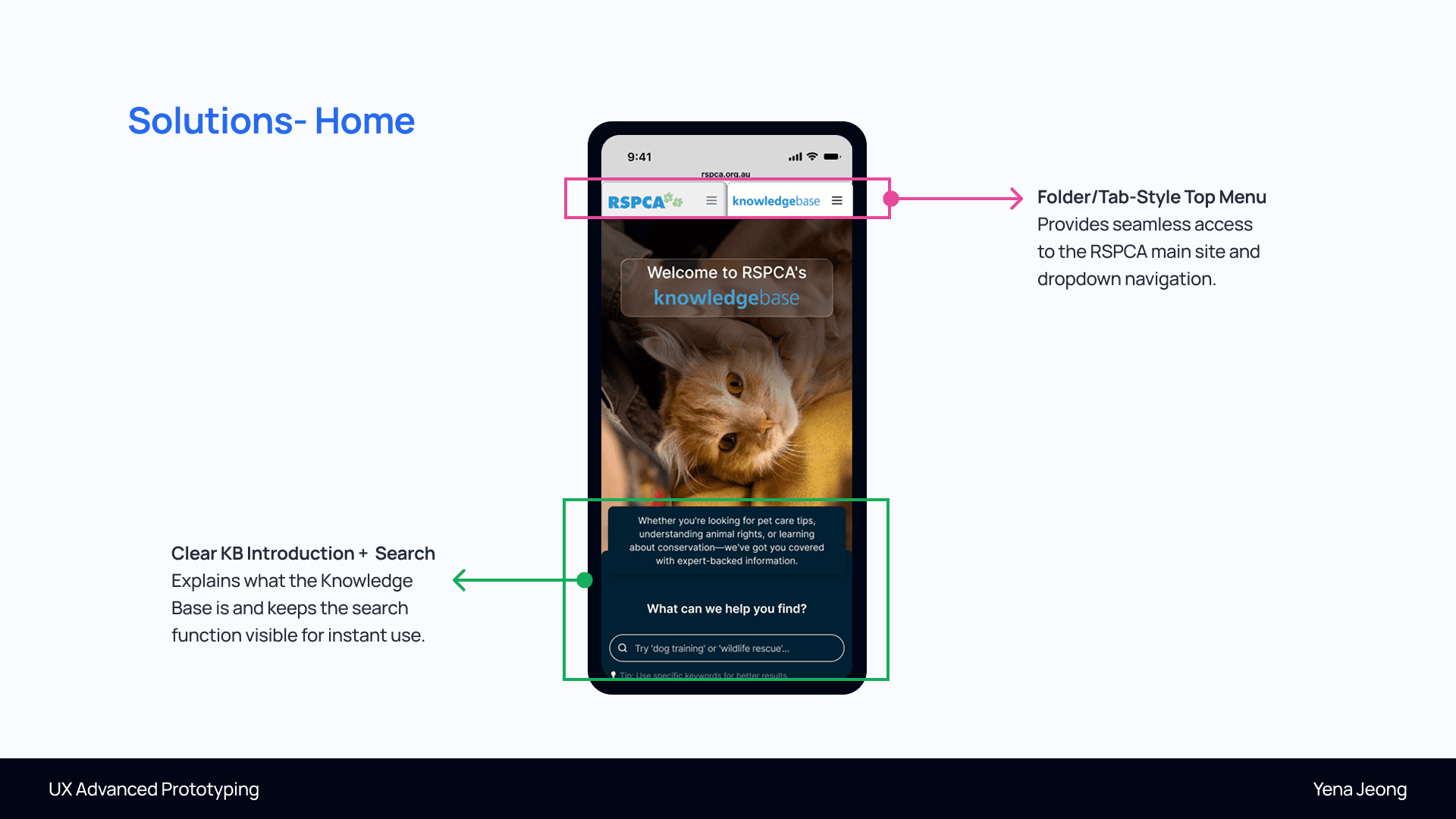 This project focuses on three main goals: Increasing returning visitors, Improving user engagement, and Creating a more streamlined, intuitive experience. These improvements support the KB’s core purpose: To provide clear pet adoption information, Offer practical pet care guidance, and Raise awareness of the RSPCA’s broader work. In short, this redesign aims to make it easier for users to find what they need, stay engaged, and build a stronger connection with the RSPCA.